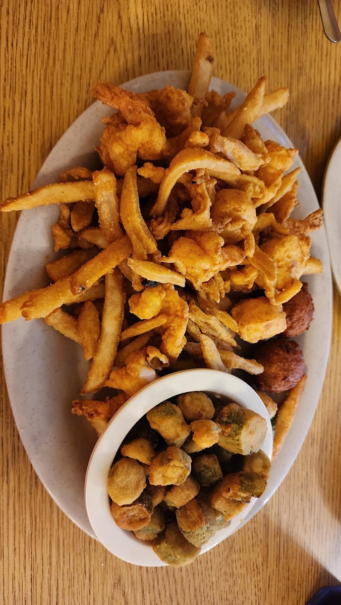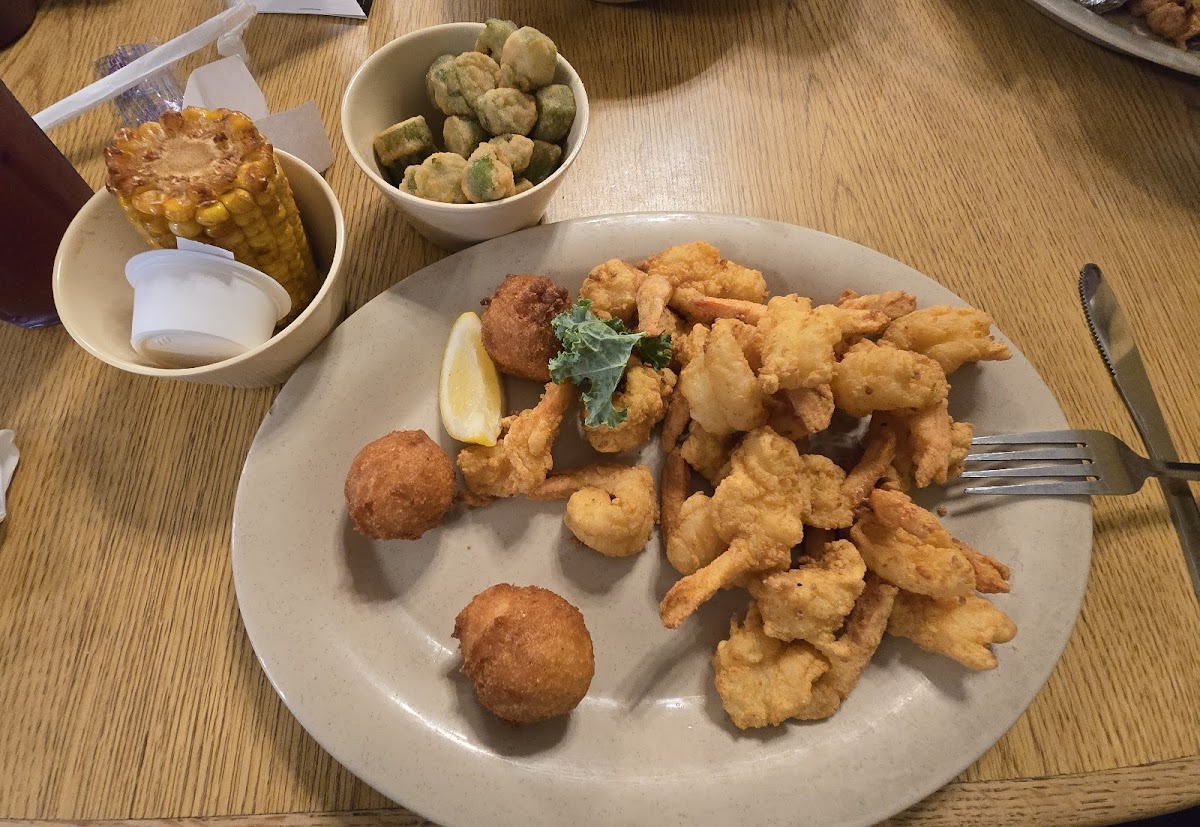 While visiting a relative in the area, she advised that this is a good dining option. We ordered fried green tomatoes (very good),clams, flounder and shrimp, baked potatoes and a garden salad. The seafood items were prepared well. The potatoes were hard and we advised the server and she exchanged for fresh ones which were delicious! Overall the food was moderately priced and in my opinion could have been hotter. I prefer my cooked items very hot. The portion sizes were fairly large so I didn’t have room for dessert ; however, the restaurant seemed to have a good selection of desserts as well, Including a very rich looking chocolate cake. Overall I would give it a go. Our server was very attentive.